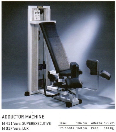 Prodotto specifico per l’allenamento dei muscoli dell’interno coscia. L’esercizio si esegue da seduti effettuando un movimento di apertura e chiusura delle gambe. La resistenza, posta all’interno delle gambe, è data da un pacco pesi e permette di gestire carichi diversi per ogni tipologia di soggetto.