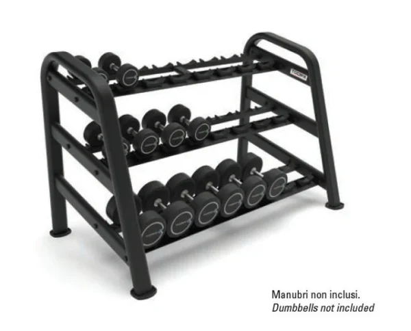 - 3 Ripiani – Struttura modulare a 3 ripiani pensata per stivare manubri a testa tonda.