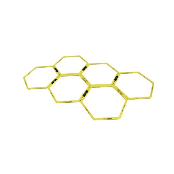 Evoluzione della scala classica, questa composizione di esagoni, facile da stendere e da richiudere, permette molteplici variazioni nella geometria degli appoggi negli esercizi di agility.