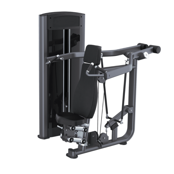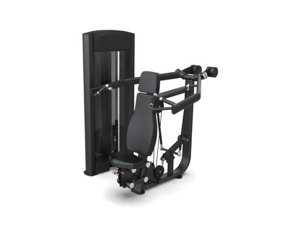 Shoulder Press Convergente Iron Line B.Power è dotata di sistema di spinta a leveraggio singolo con pacco pesi da 100 Kg
