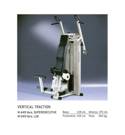 Attrezzo multiuso che consente di eseguire numerosi esercizi per gli arti superiori, in particolare per i muscoli dorsali. Gli esercizi si eseguono con una trazione dall’alto verso il basso delle sbarre. In base alla tipologia di impugnatura e al posizionamento da seduti, si attivano muscoli diversi del tronco e braccia. La resistenza è data da un pacco pesi che permette di gestire carichi adeguati per ogni tipologia di soggetto.